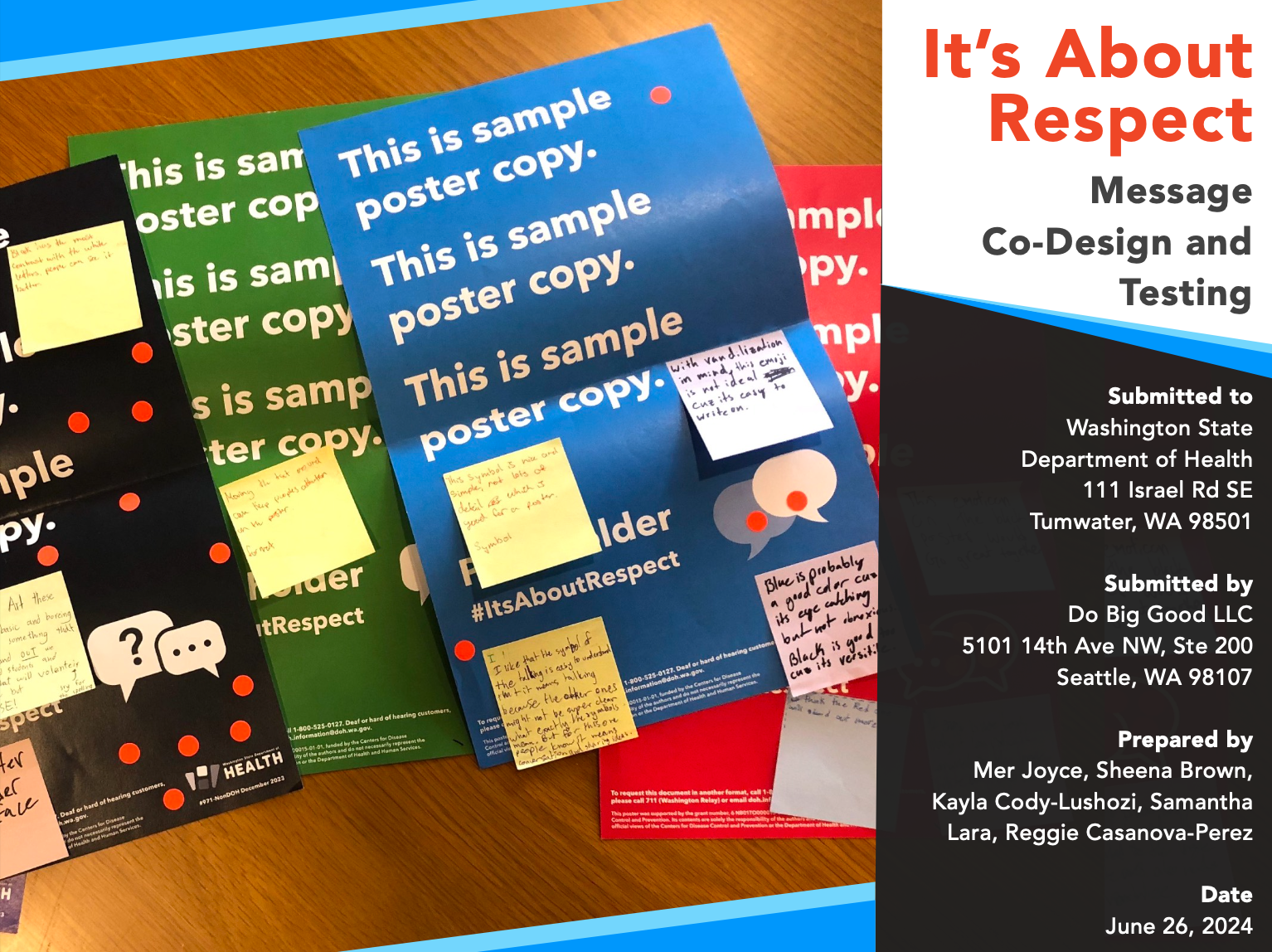 Final report (click image to view) for It’s About Respect, a project for the Washington State Department of Health. We co-designed anti-bullying posters for this behavioral health campaign with LGBTQ+ and Latine middle schoolers who are directly impacted by identity-based bullying